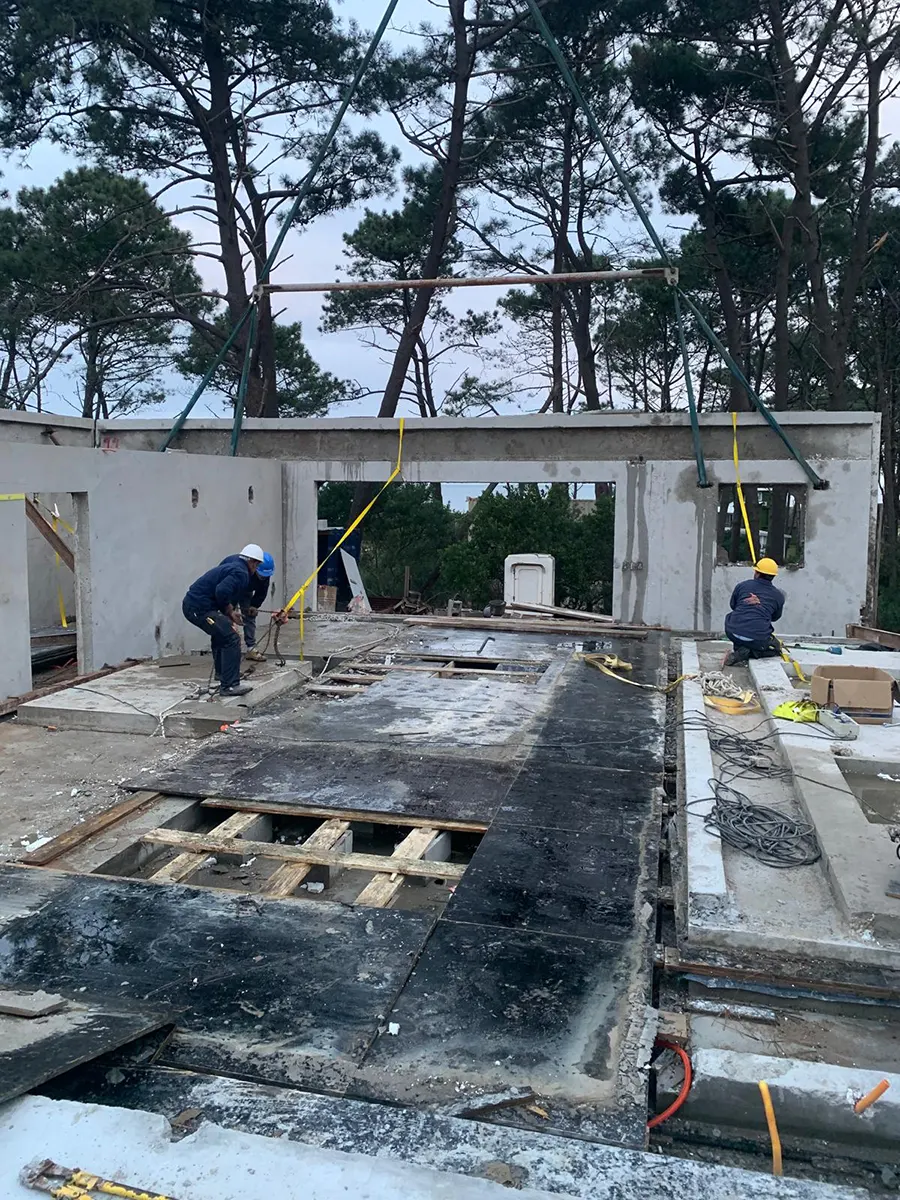 Como complemento, se han proyectado otras dos viviendas de 30 m² para huéspedes o visitas, acompañando la pendiente del terreno. Las mismas contarán con un dormitorio, un baño y cocina integrada al estar.